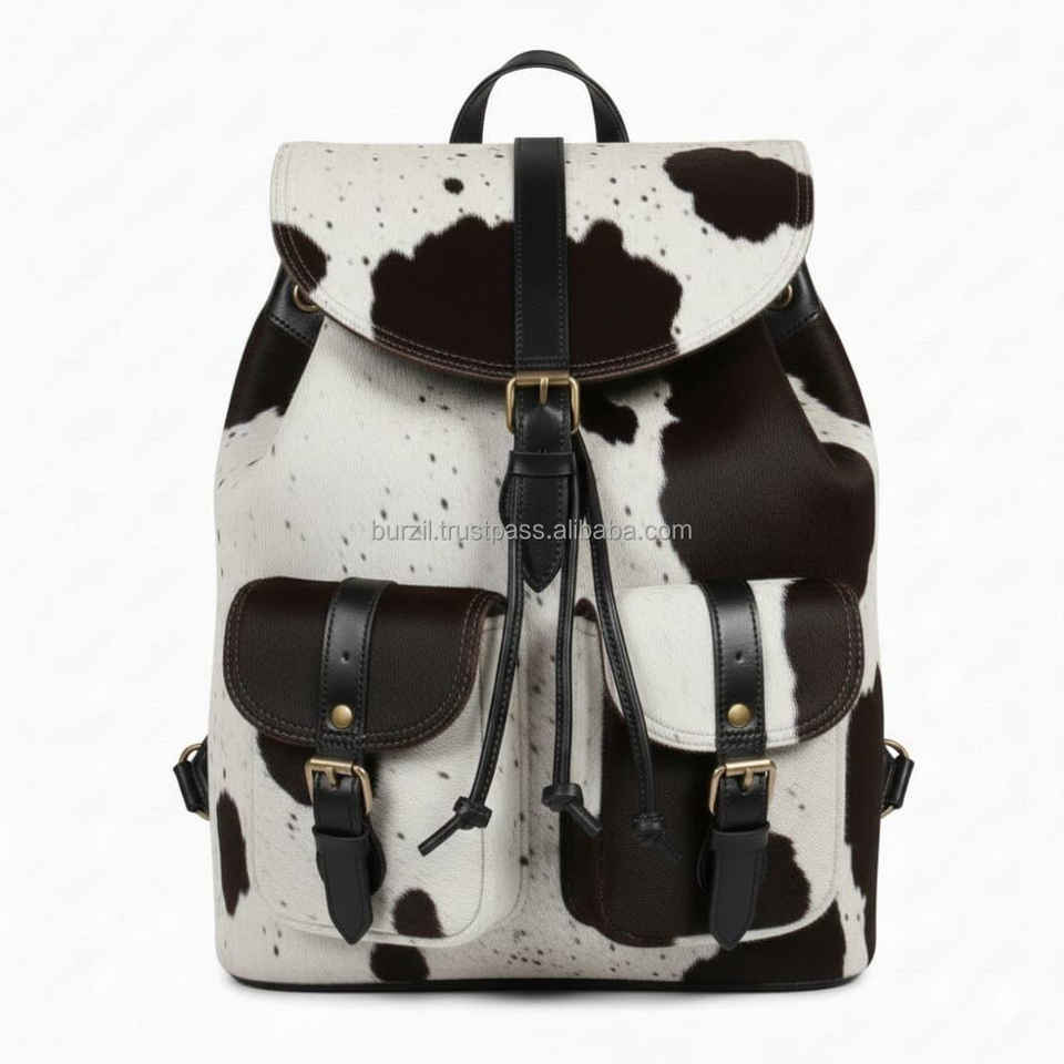 Sac à dos en cuir de vachette véritable avec poils, fait main, pour voyage et école, pour hommes et femmes, fournisseur en gros, export LHBP-0005
