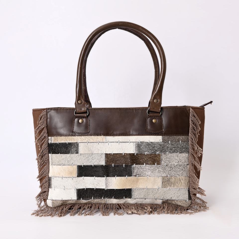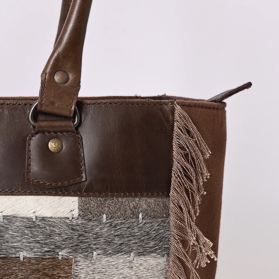 Design:Cowhide Patched Azetic Front With Recycled canvas With Leather Handles