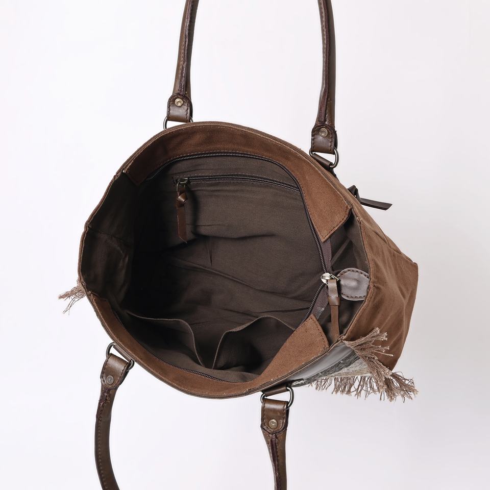 Cowhide Patched Azetic Front With Recycled canvas With Leather Handles