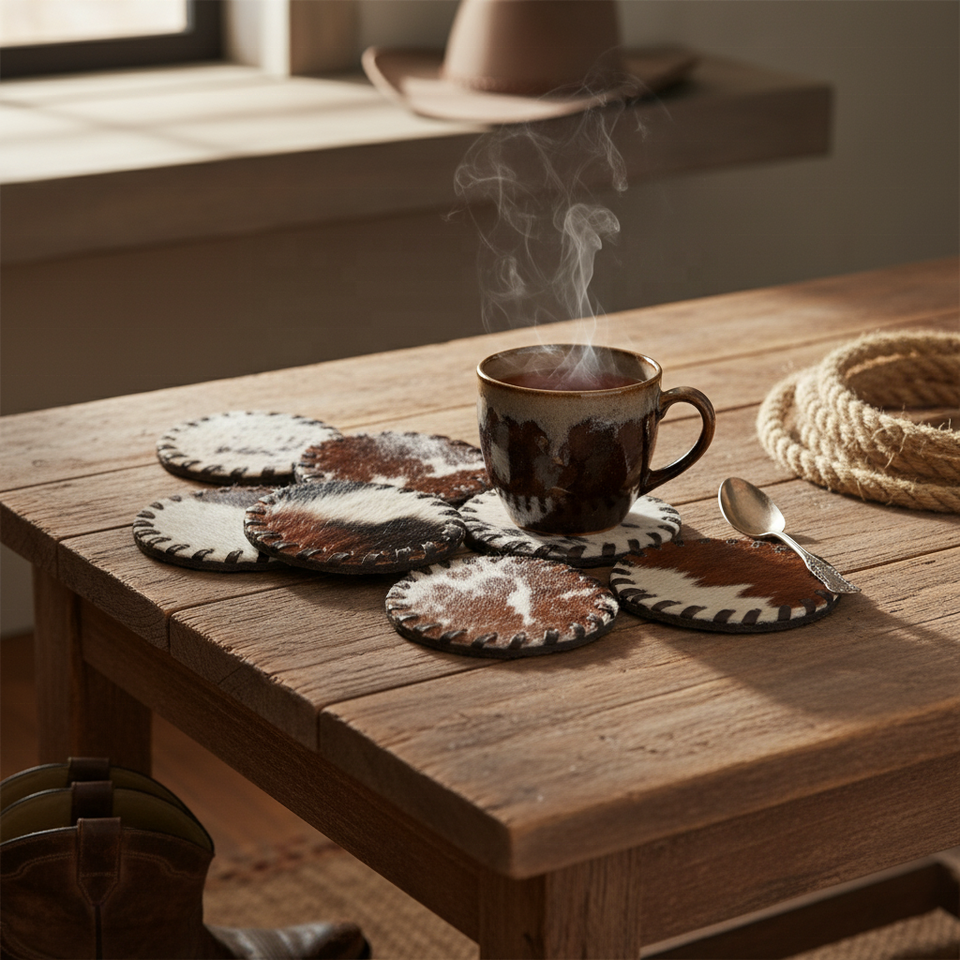 Sous-verre en cuir de vachette véritable, style western