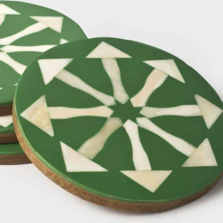 Plateau de service et sous-verres sur mesure, design incrusté d'os noir, matériaux bois, résine et MDF, décoration intérieure, service alimentaire, pierre, sous-verres
