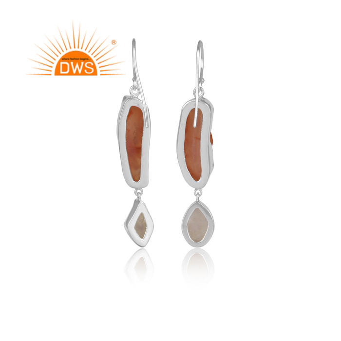 Wostu — boucles d'oreilles pendantes en cornaline, bijoux authentiques, pierre de lune arc-en-ciel, en argent Sterling 925