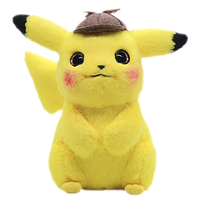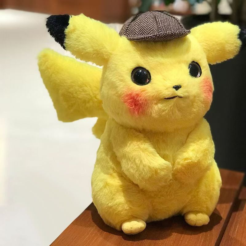 Genuine Detective Pikachu Plush Toy Pokemoned Soft Stuffed Animal Doll with Detective Hat High Quality Kids Fans Gift Collection