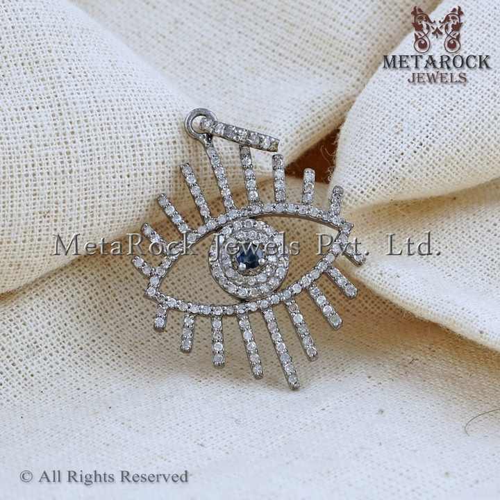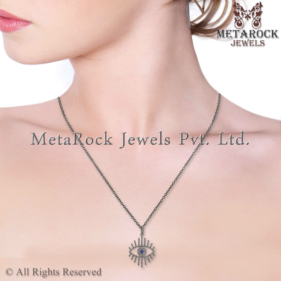 Genuine Diamond Oxidized 925 Silver Blue Sapphire Gemstone Designer Handmade Fashion Pendant Chain Unisex Necklace