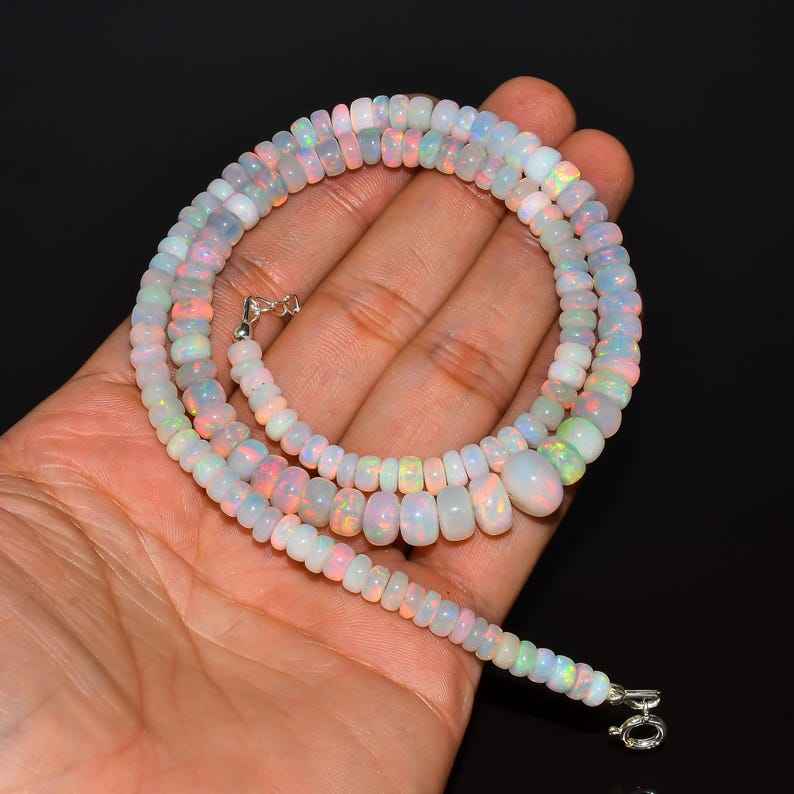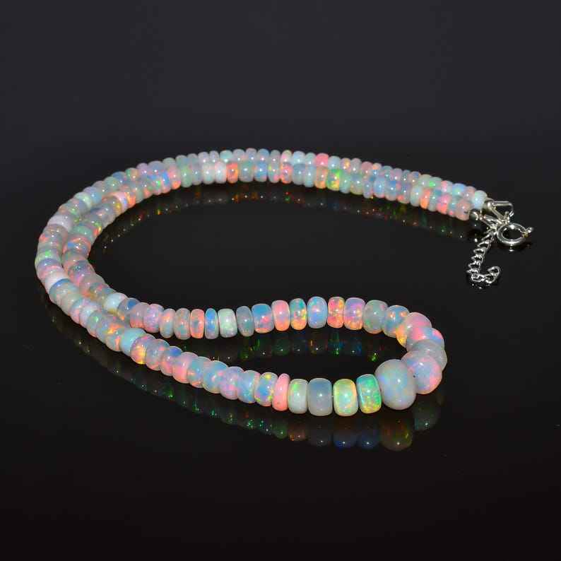 Keyword:Opal Beaded Necklace Rondelle Silver Minimalist Jewelry