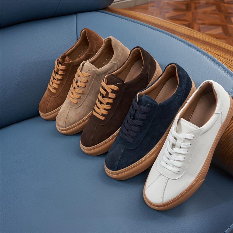 Chaussures d'été pour hommes en cuir de vachette véritable première couche, semelle souple, respirantes, légères, antidérapantes, baskets blanches avec semelle extérieure en caoutchouc