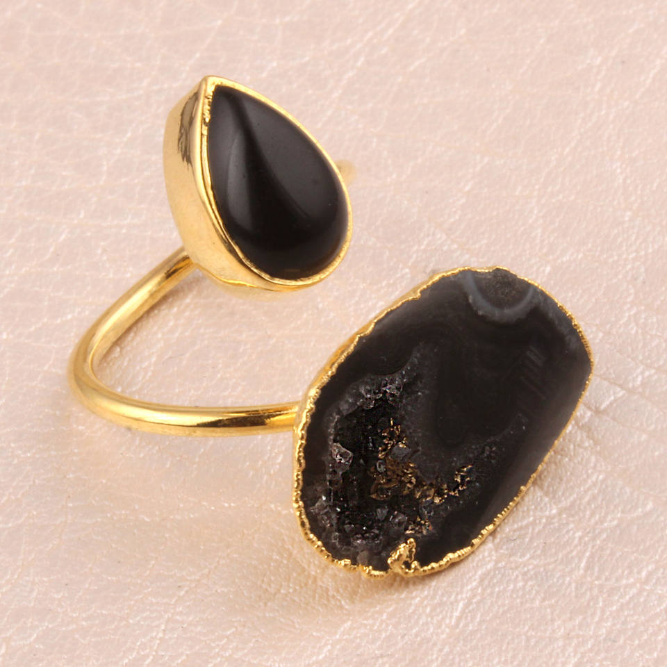 Bague ajustable en or plaqué or, véritable geode druse et bleu monalisa, anneau en forme de poire, 1 pièce