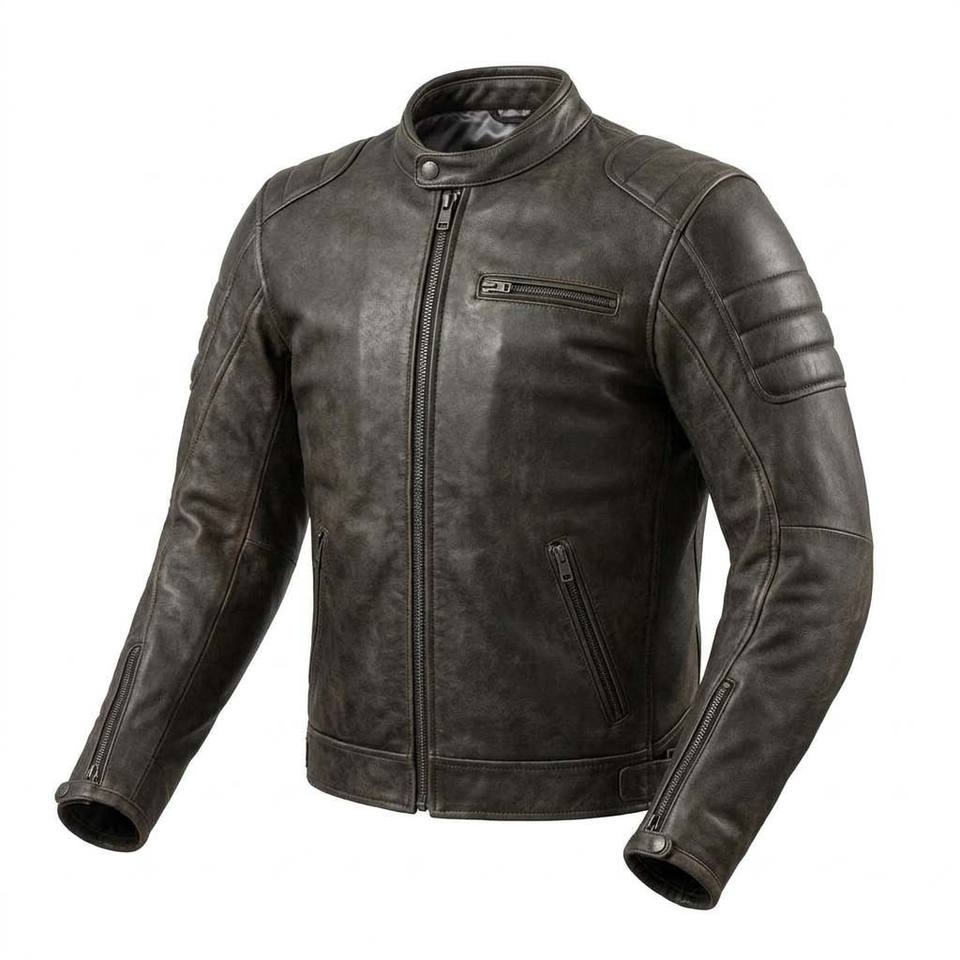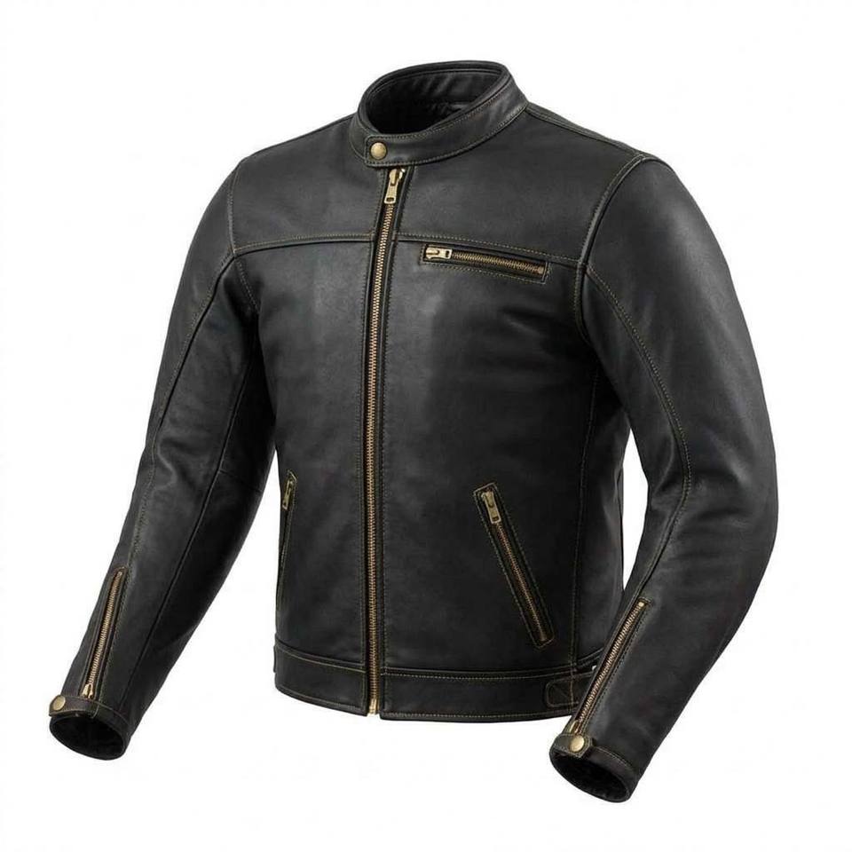 Veste en cuir de chèvre véritable pour hommes, veste de moto rétro, équipement de motard vintage, style café racer.