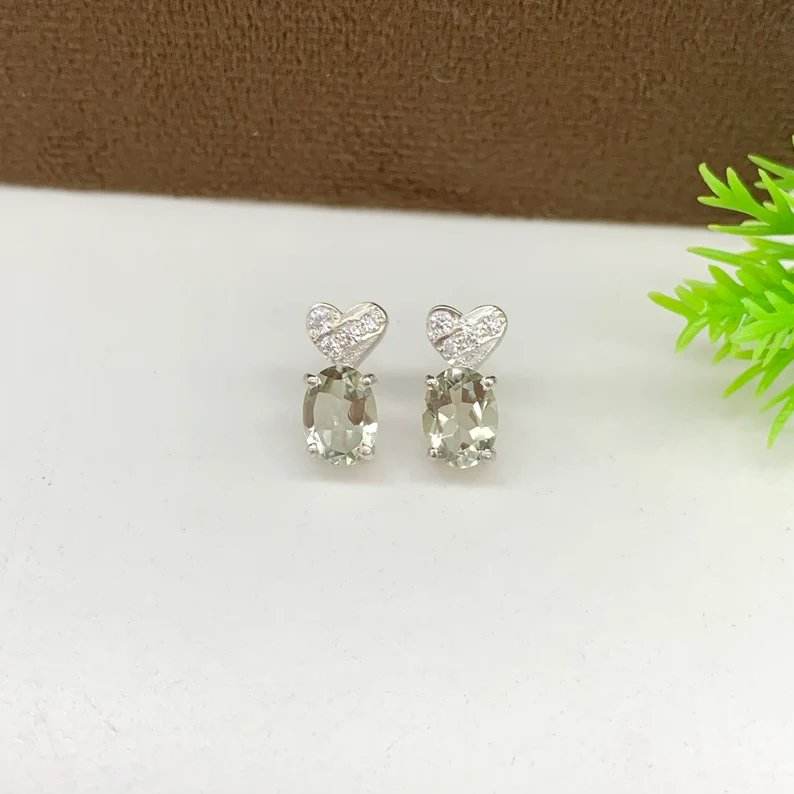 Design romantique 925 Sterling Silver Fine Stud Boucles d'oreilles Véritable Améthyste Verte Pierre Push Back Stud Anniversaire Cadeau D'anniversaire pour