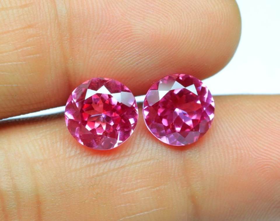 Véritable paire de saphir rubis cultivé en laboratoire Pierre précieuse rubis à facettes Forme ronde 8mm Saphir Gemmes