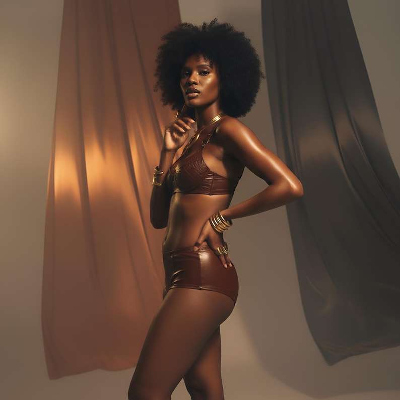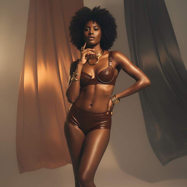 Ensemble de soutien-gorge en cuir véritable | Bralette en cuir marron faite à la main | Shorts en cuir taille haute