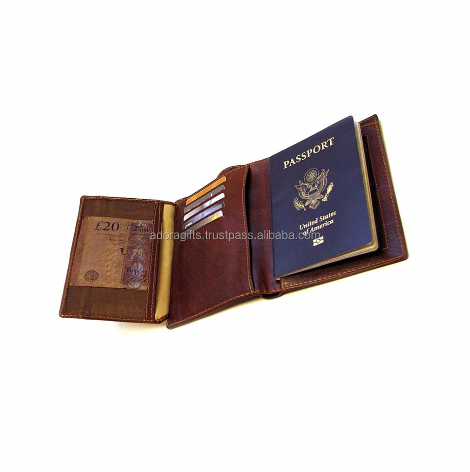 Porte-cartes en cuir véritable Nouvelle couverture de passeport de voyage à la mode avec étui de crédit pour carte d'identité et pochette pour billets
