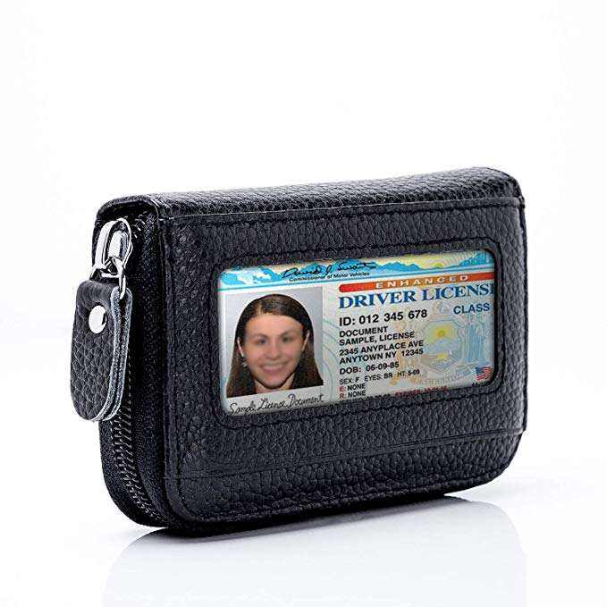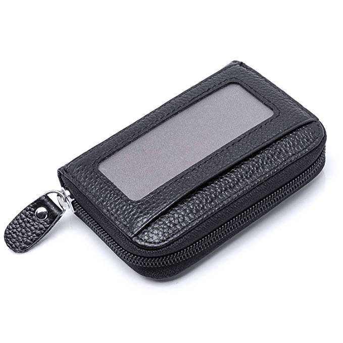 Portefeuille en cuir véritable avec fermeture éclair et blocage RFID Petit portefeuille de cartes pour hommes femmes