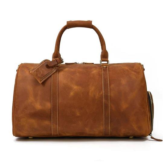 Sac de voyage en cuir véritable Sac de voyage en cuir véritable Sac à bandoulière de luxe avec compartiment à chaussures