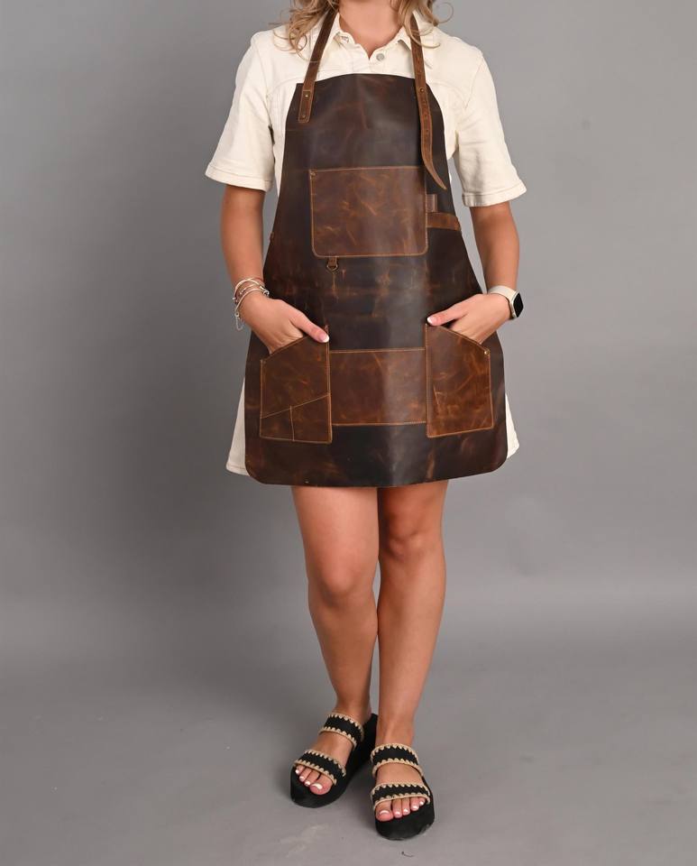 Tablier de travail en cuir véritable pour fleuristes, jardiniers et personnel de pépinière avec protection et fonctions anti-odeurs, poche pour fleurs LPN-0277