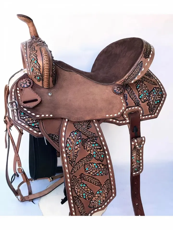 Genuine Leather Horse Saddle Equestrian Barrel Racing Western Trail Tooled Carved 10-18 100% Premium Quality