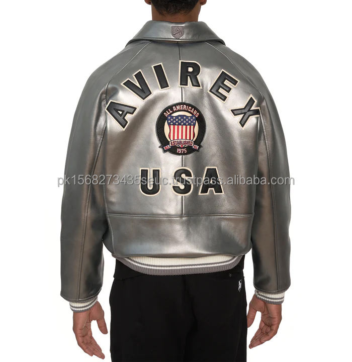 Veste en cuir véritable pour homme, sur mesure, cuir véritable avec broderie, veste Avirex, cuir de vache