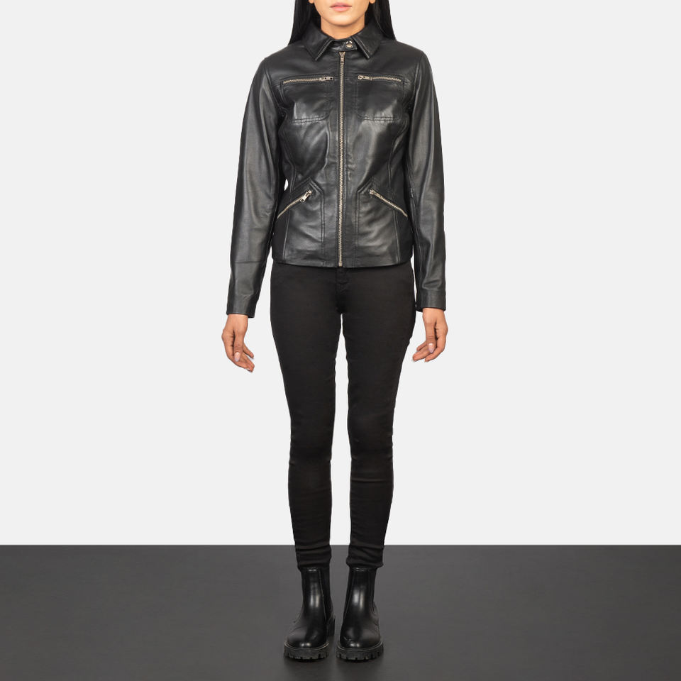 Veste en cuir véritable pour femmes avec manches complètes, boutons sur le devant, coupe ajustée, vêtements d'extérieur confortables et décontractés