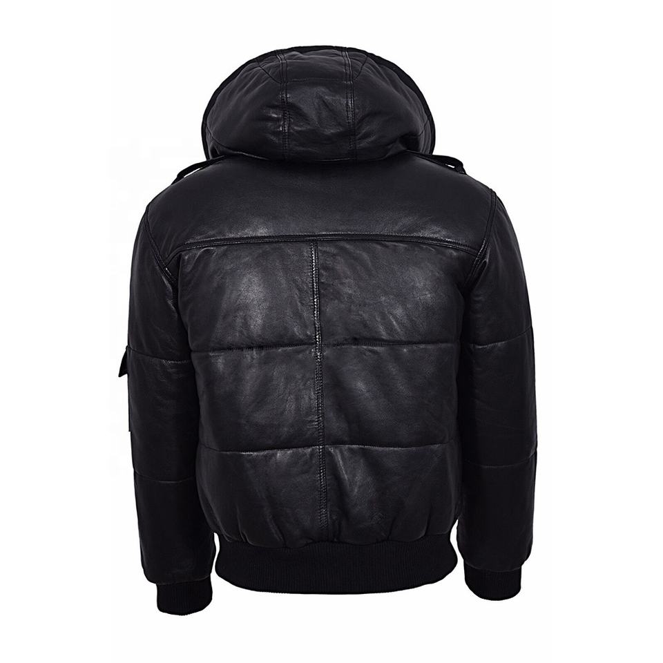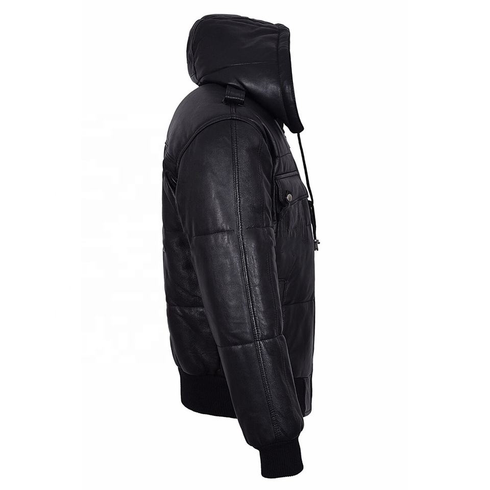 Veste d'hiver en cuir véritable pour homme avec capuche amovible en fausse fourrure