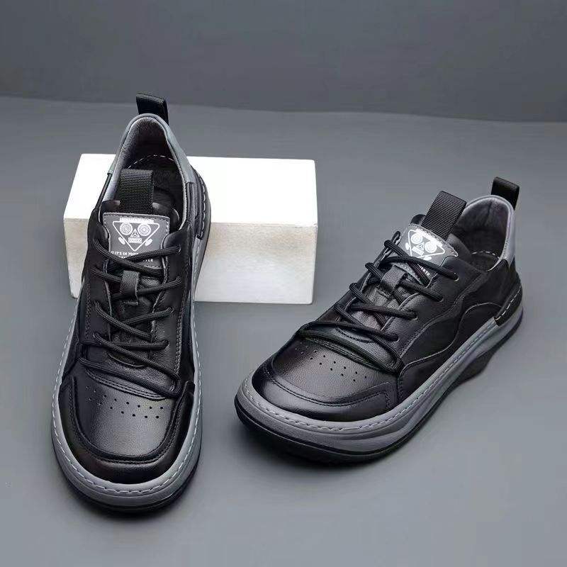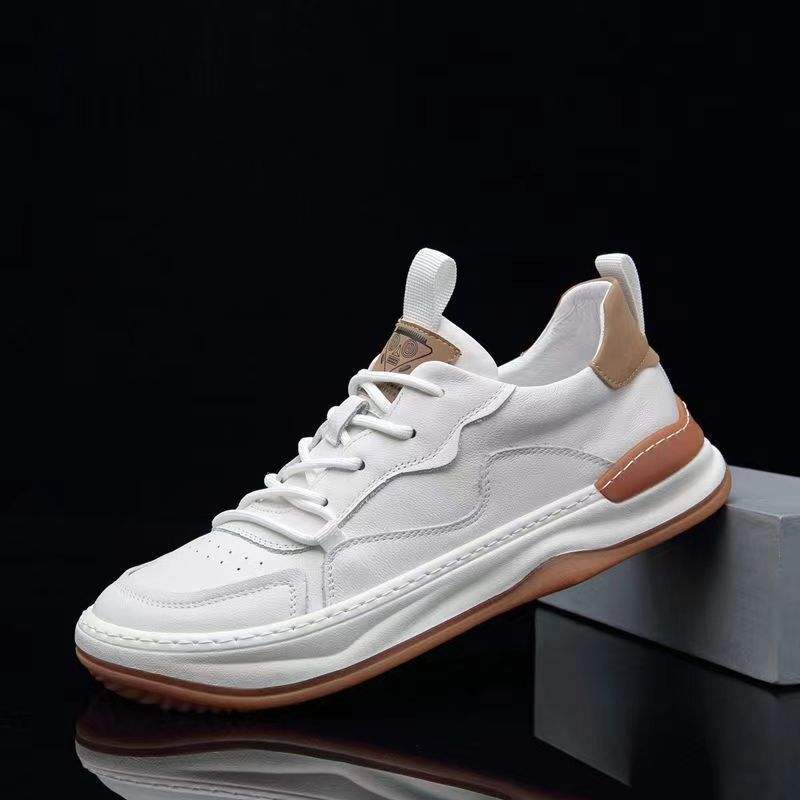 Baskets en cuir véritable grande taille pour homme avec fermeture à lacets, respirantes, désodorisantes, semelle extérieure en caoutchouc résistante à l'usure, loisirs, blanches