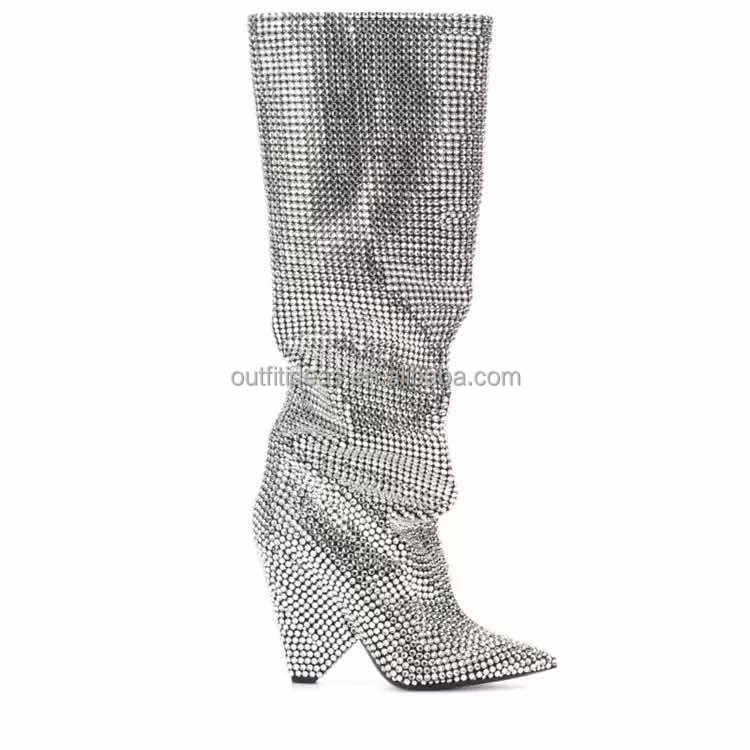 Bottes en cuir véritable de luxe pour femmes, avec strass et cristaux, bottes Kendall Jenner pour le 22e anniversaire, bottes hautes en cristal