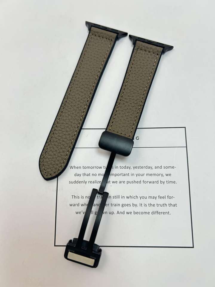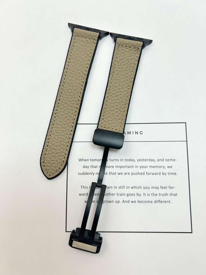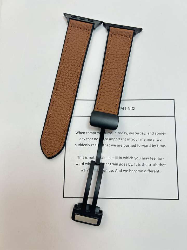 Genuine Leather Magnetic Loop Strap for Apple Watch Series 10 9 8 7 SE Ultra 2 Band Litchi Grain Replacement Wristband 49mm 45mm