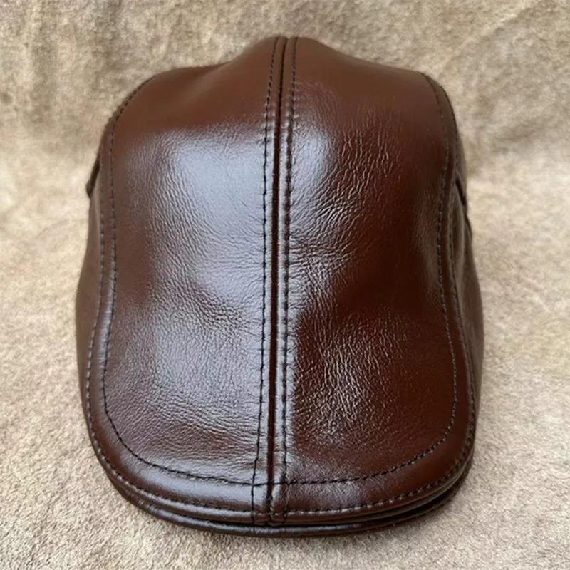 Casquettes de béret pour hommes de haute qualité en cuir de vachette véritable marron automne hiver réglable impression numérique de qualité supérieure
