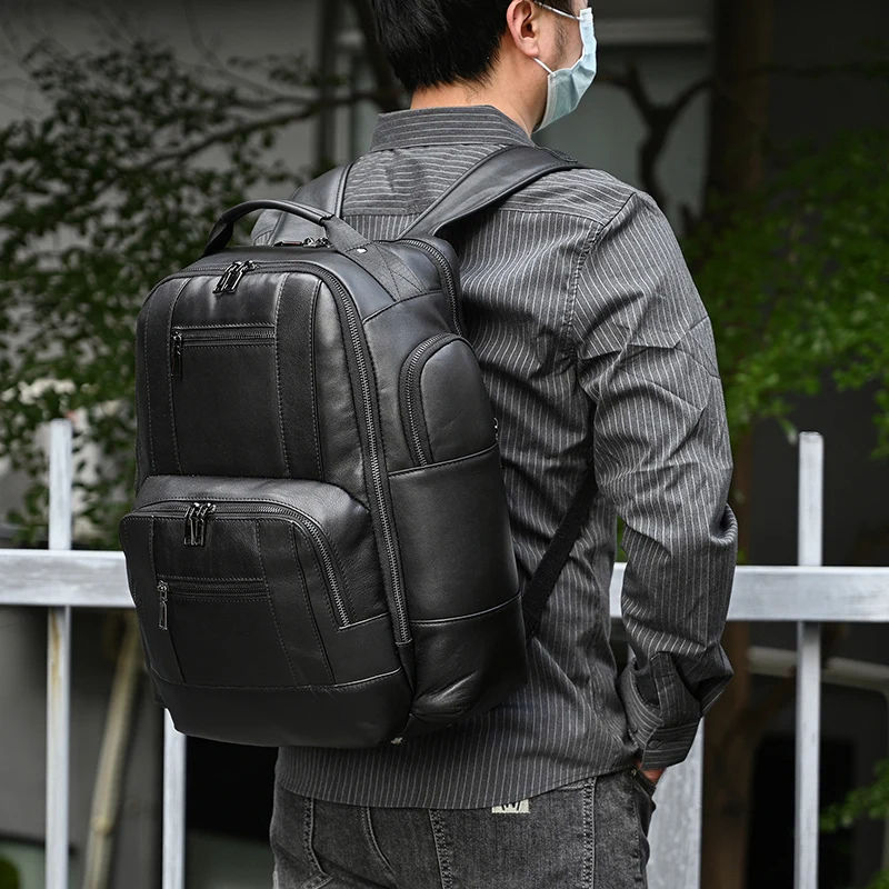 Genuine Leather Men's Cowhide Leather Backpack Luxury Full Grain Genuine Leather 17" Laptop Cowhide Rucksack