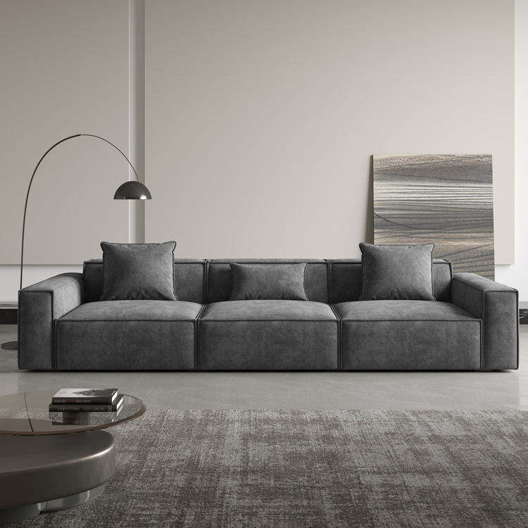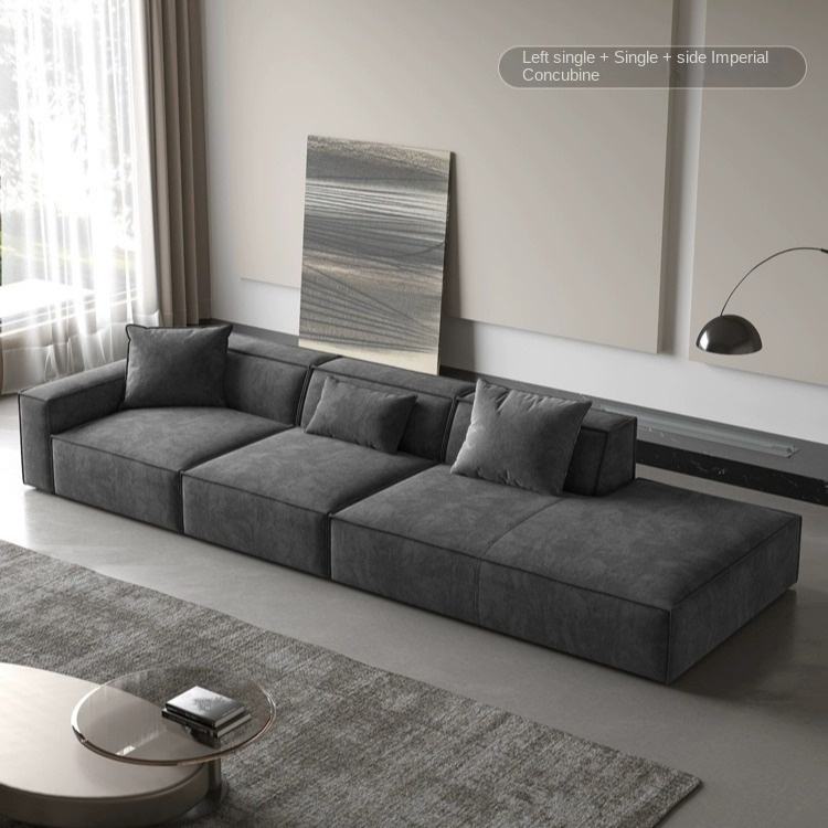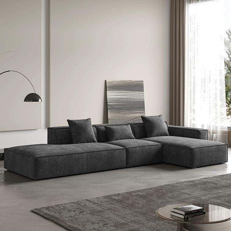 Ensemble de canapé modulaire en cuir véritable avec pieds en acier inoxydable rembourrés de mousse, design moderne pour salon, petit appartement