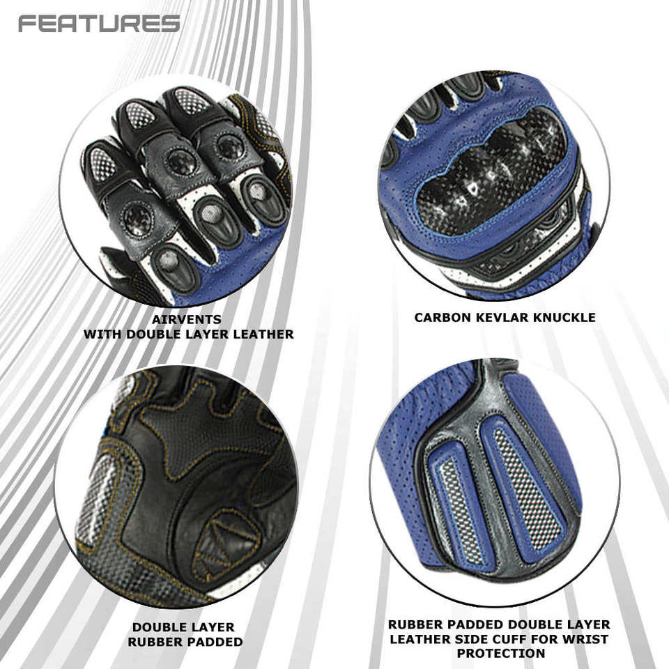 Gants de moto en cuir véritable Pyrotect, compatibles écran tactile, sportifs, respirants, ajustables, à doigts complets, avec cordon de serrage