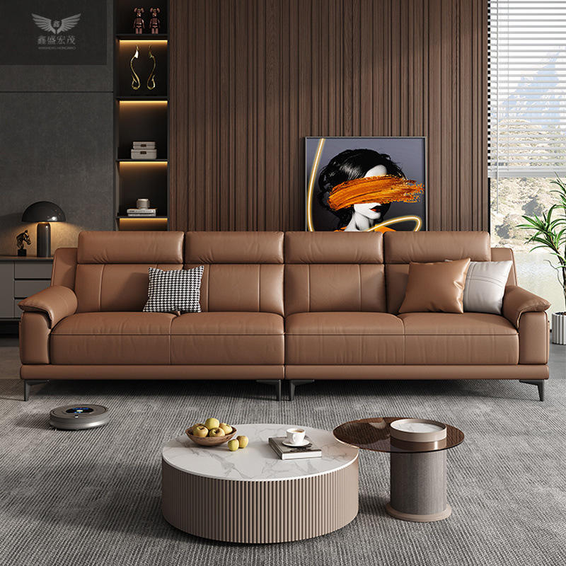 Canapé droit en cuir véritable Première couche en cuir de vachette Moderne Simple Salon Droit Une ligne Canapé italien minimaliste en fer