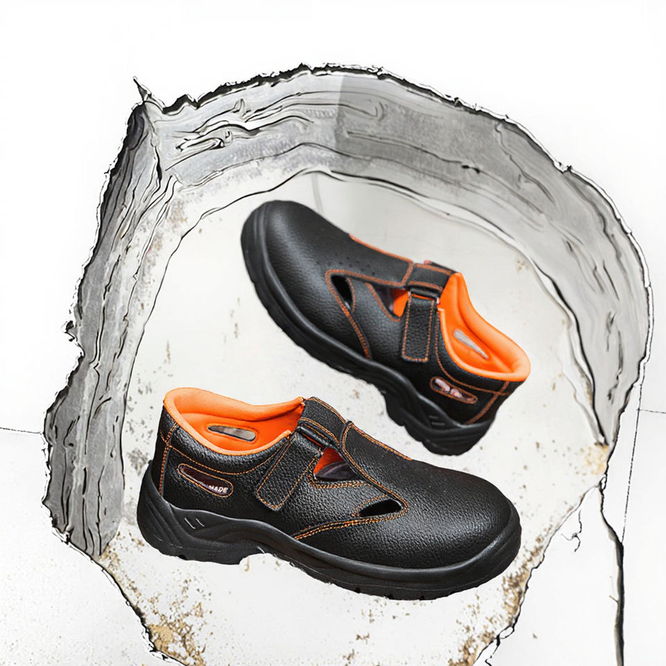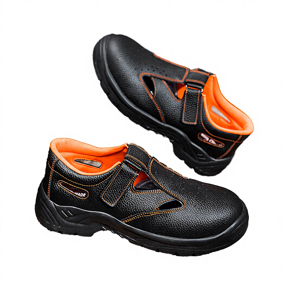 Sandales de travail en cuir véritable respirantes à scratchs, résistantes aux épingles, idéales pour l'été et toutes occasions