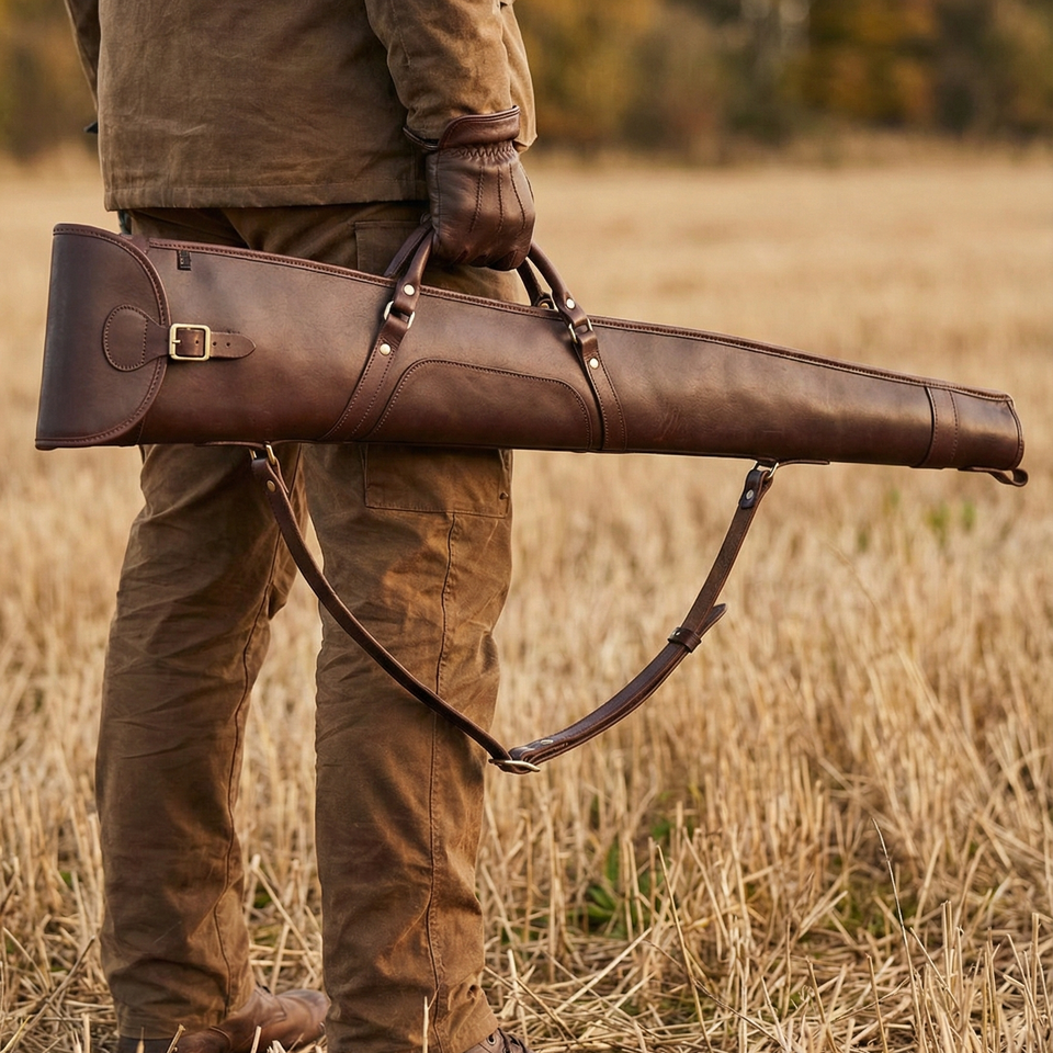 Housse de fusil de chasse en cuir