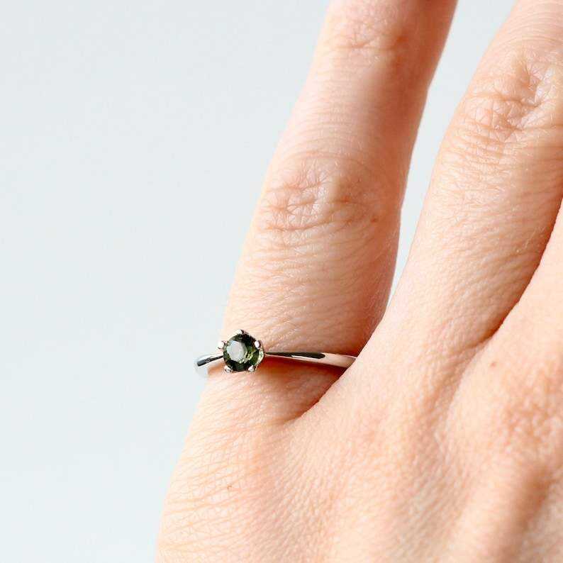 Bague en moldavite véritable avec pierre naturelle de 4mm en argent sterling massif Bijoux faits à la main Cadeau pour elle Parfait pour bague de mariage