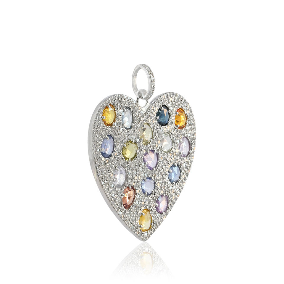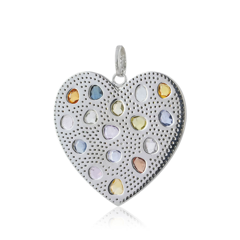 Pendant Name:Diamond Multi Sapphire Heart 925 Silver Pendant