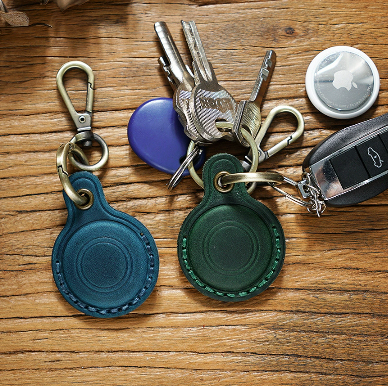 Étui de protection en cuir véritable avec porte-clés et traceur de positionnement anti-perte, support de stock transfrontalier, étiquette Crazy Horse pour AirTag