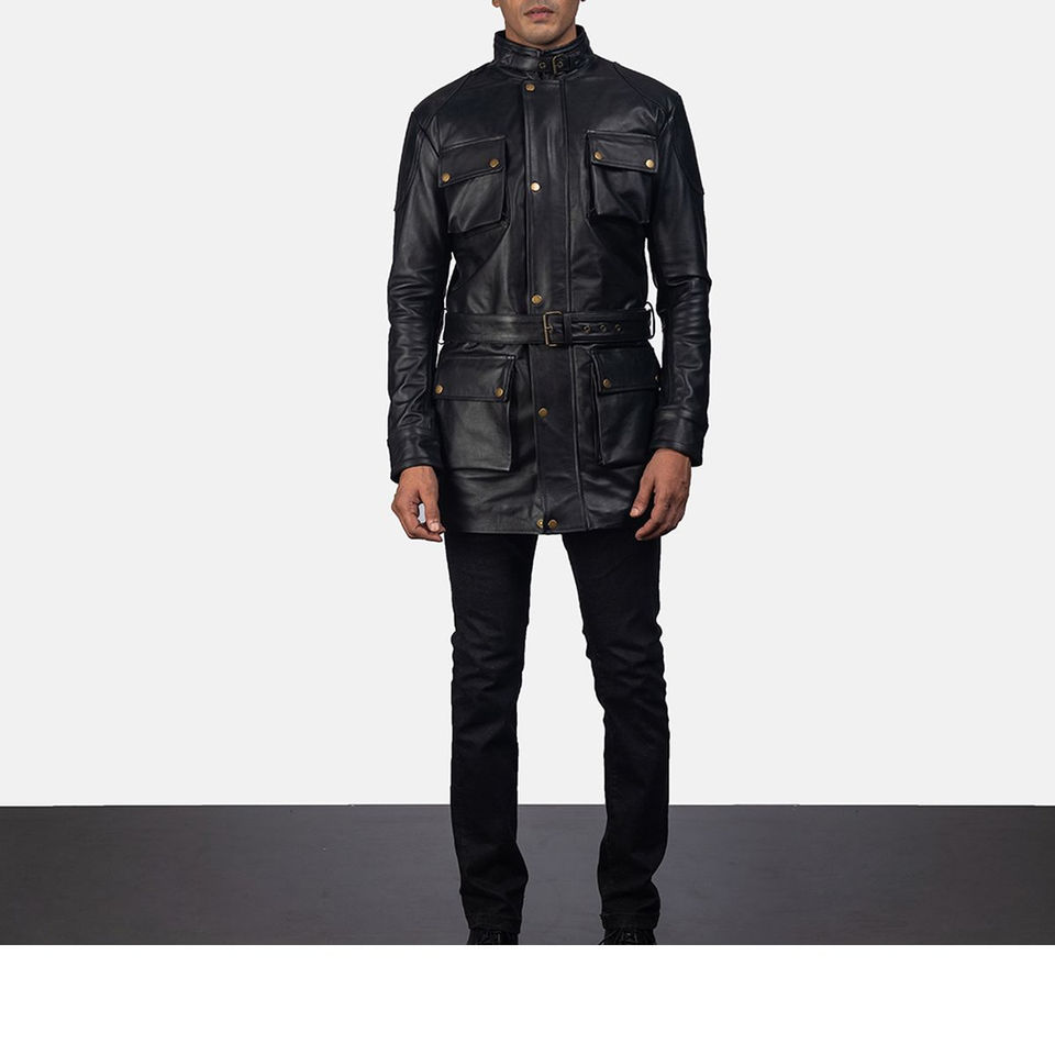 Veste d'hiver authentique pour homme avec fermeture éclair, poches avant, ceinture à la taille, en cuir noir, coupe-vent et respirante