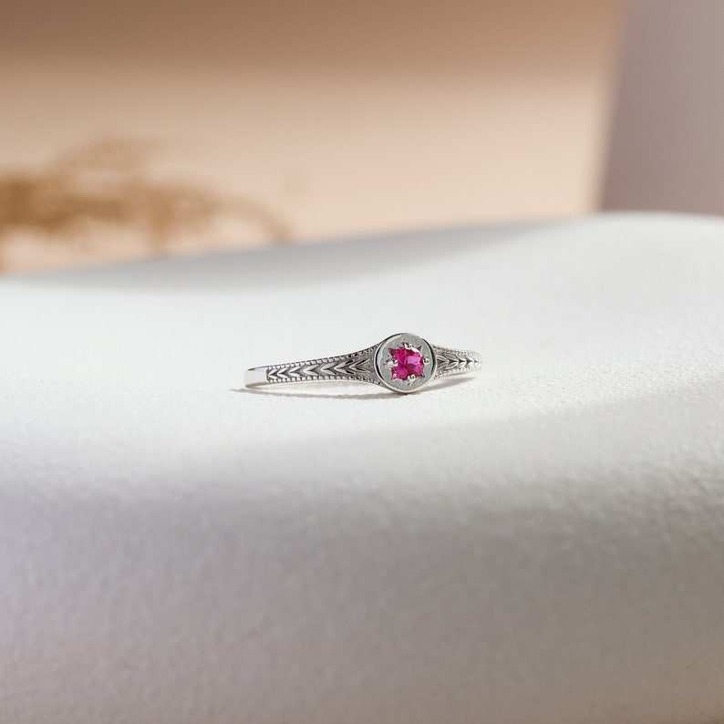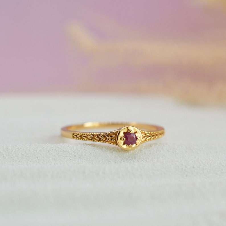 Bague étoile en rubis véritable, argent sterling 925 plaqué or 14 carats, rubis véritable, délicate, empilable, rubis de laboratoire, pierre de naissance, cadeau pour elle