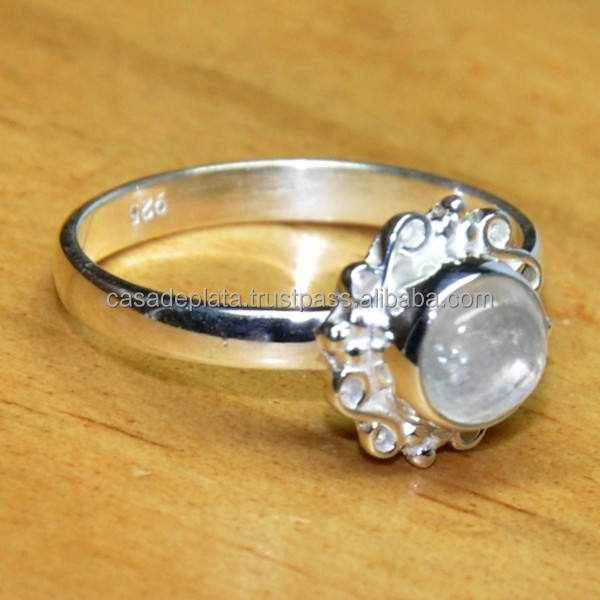Bague de mariage classique de créateur en argent sterling 925 avec pierre de lune arc-en-ciel de forme authentique, faite à la main, de haute qualité CASA DE PLATA