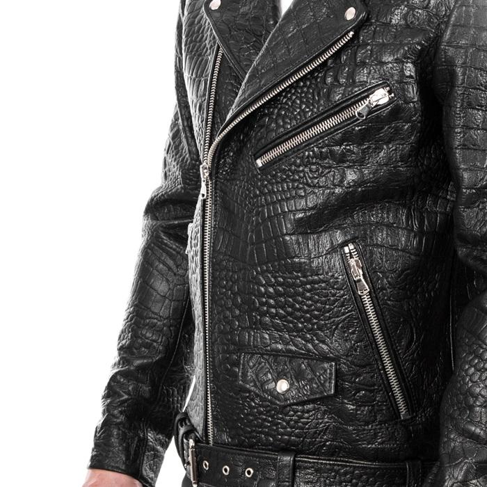 Genuine Snake Leather Jacket Black for Print High End Python Leather Asymmetric Zip Biker Belted Mens Womens Canvas