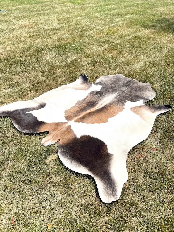 Tapis en cuir de vachette tricolore véritable, tapis en peau de vache brésilienne mouchetée, tapis en peau de vache, tapis en cuir de vachette