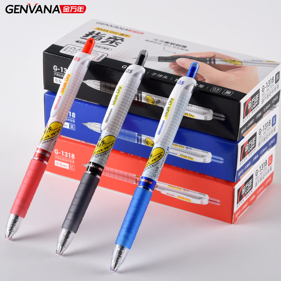 Genvana Vente directe en usine Stylo gel rétractable Super Soft Grip 0.5mm Largeur de ligne Pointe de balle Grille en plastique Stylos gel de marque