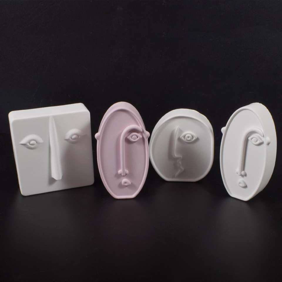 Moule en silicone pour bougie en plâtre fait main, motif visage abstrait géométrique, statue de visage humain abstrait en pierre, art du visage