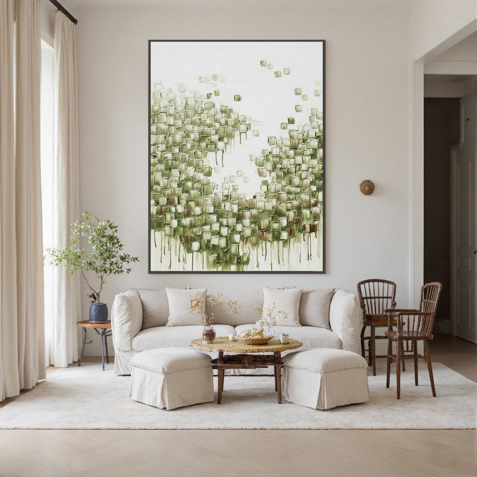 Peinture à l'huile abstraite géométrique, peinte à la main sur toile, art mural pour bureau, espace de travail partagé, décoration