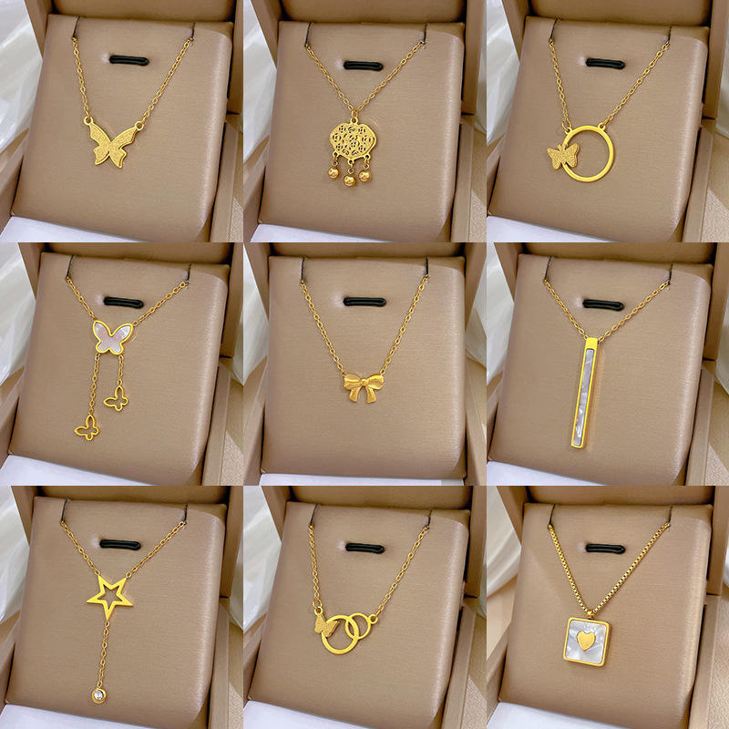 Collier minimaliste en or véritable 18 carats plaqué PVD, motif animal géométrique, pendentif papillon cœur en acier inoxydable, chaîne de clavicule, bijoux