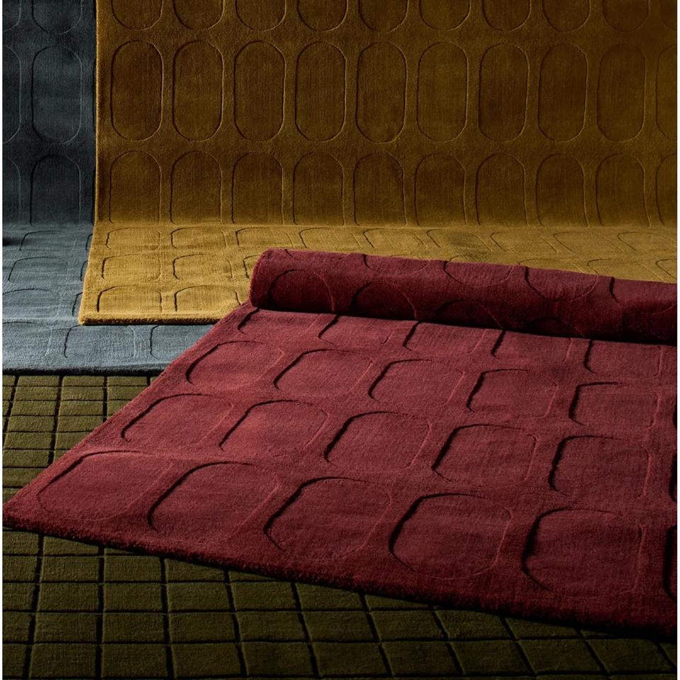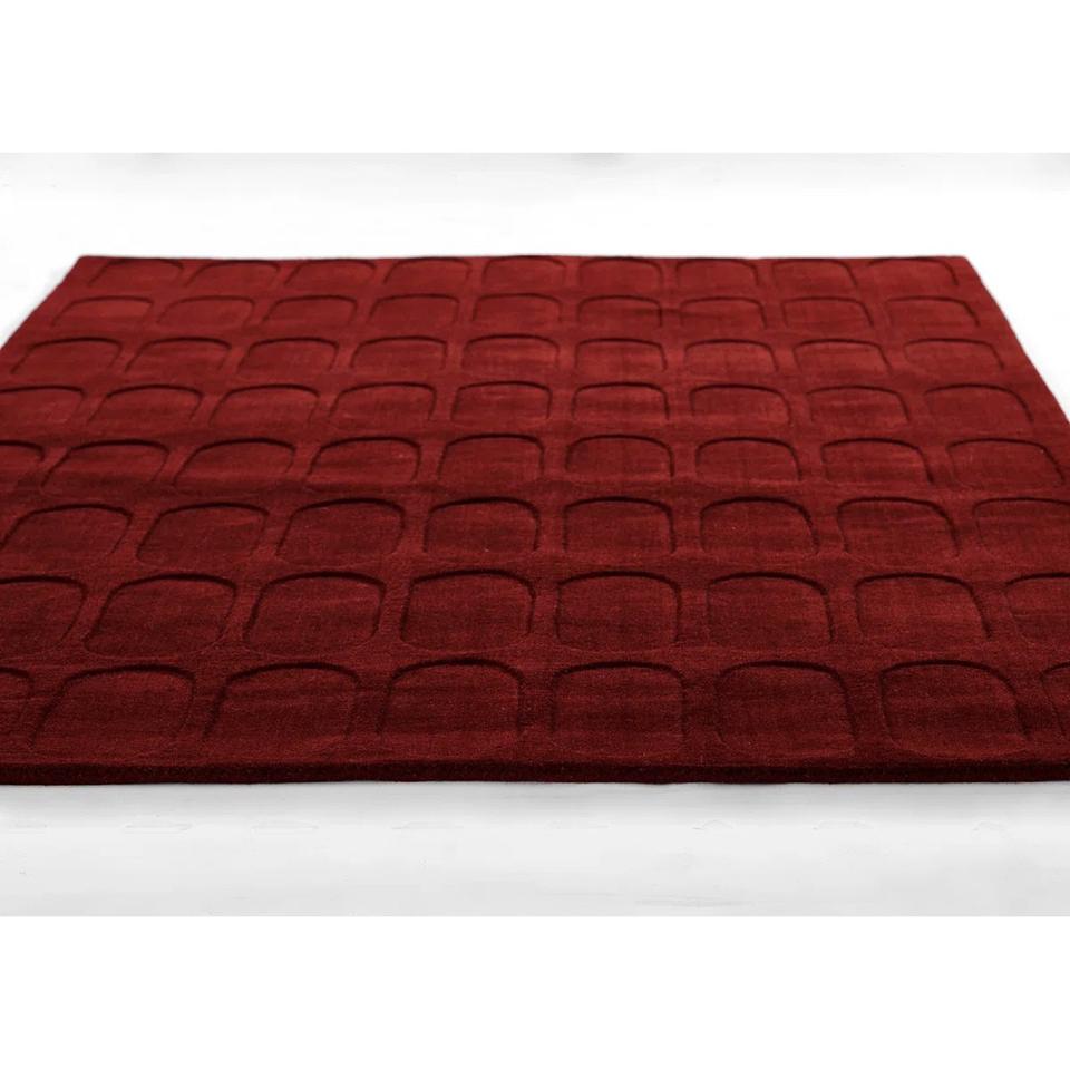 Tapis géométrique rouge en laine tufté à la main, tapis de luxe pour salon, tapis texturé minimaliste, décoration contemporaine pour la maison