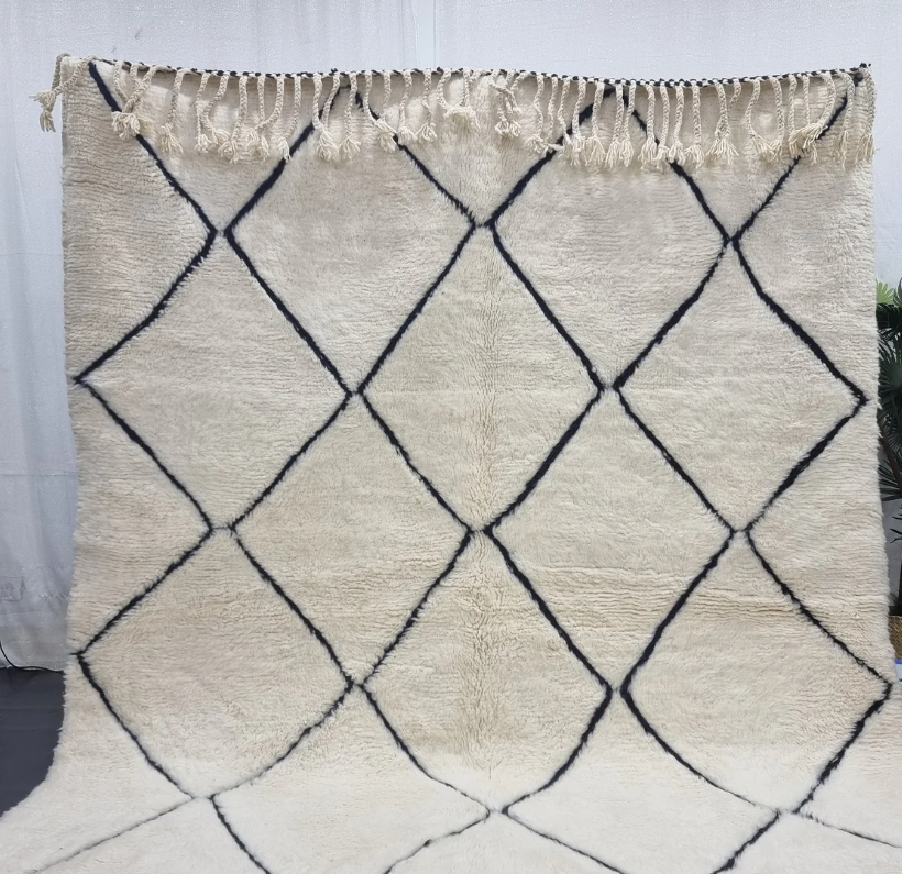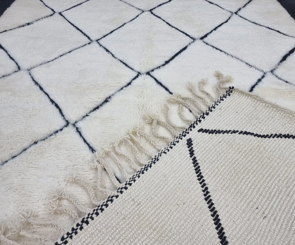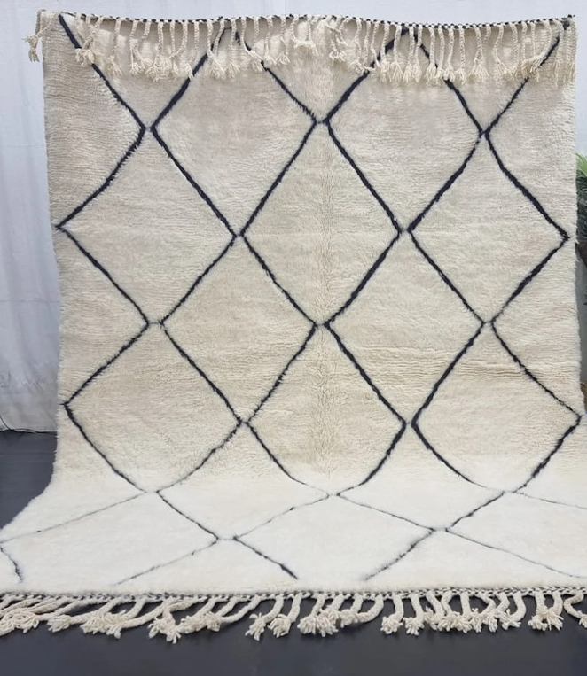 Mode:Geometric Black And White Tasseld Beni Mrirt Handmade Rug