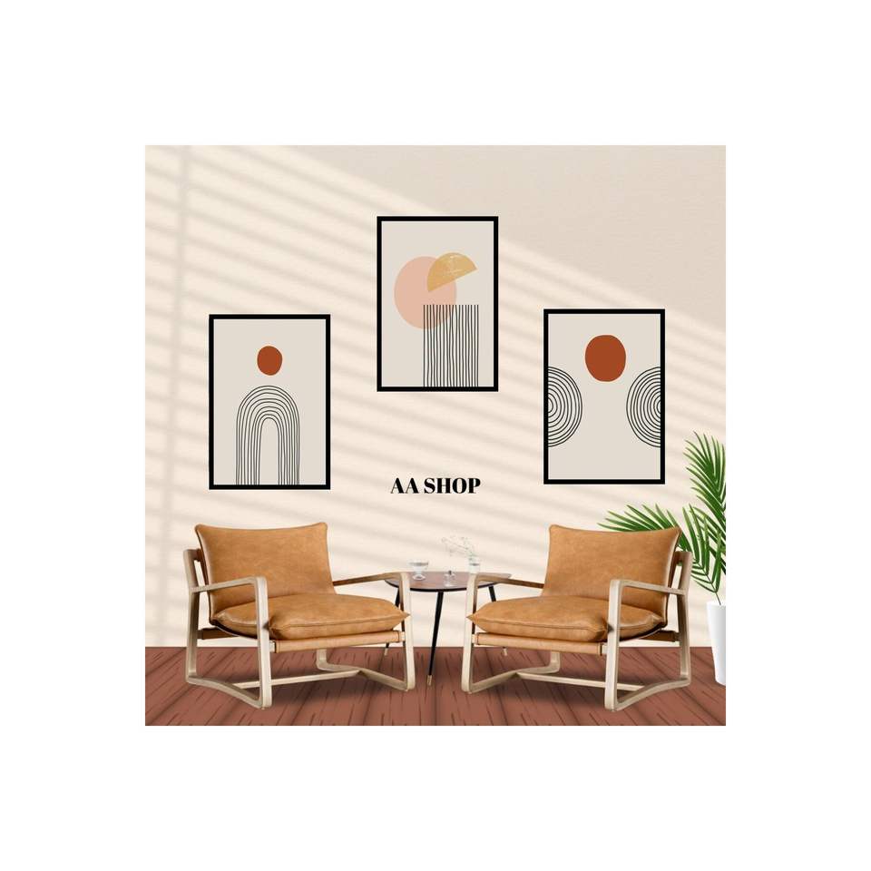 Ensemble de table en MDF avec cadre d'impression géométrique de couleur délavée 1 étagère murale et présentoir de 3 pièces