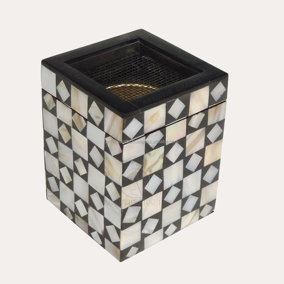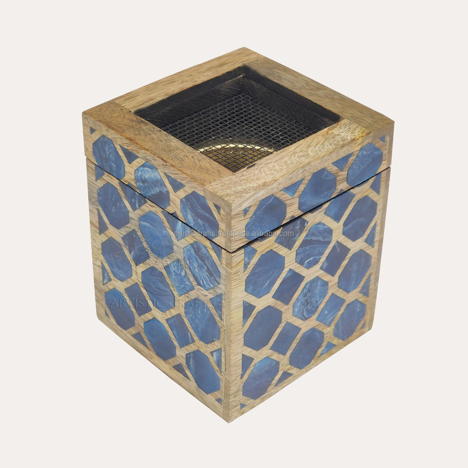 Design géométrique Bakhoor Brûleur fait à la main en résine de nacre Porte-encens en bois de charbon de bois Matériel pour maisons religieuses Utilisation Ramadan