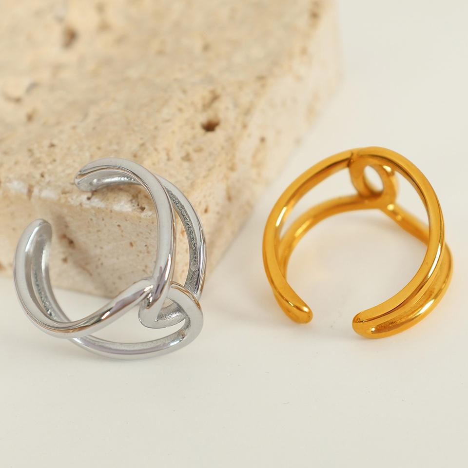 Bague géométrique double anneau en acier titane pour l'index, bijou unisexe, cadeau